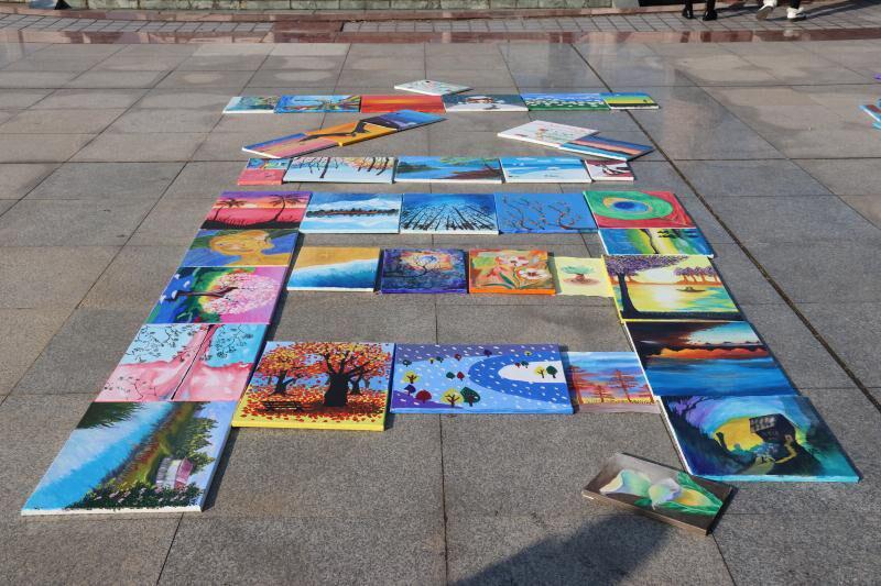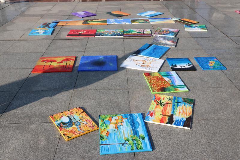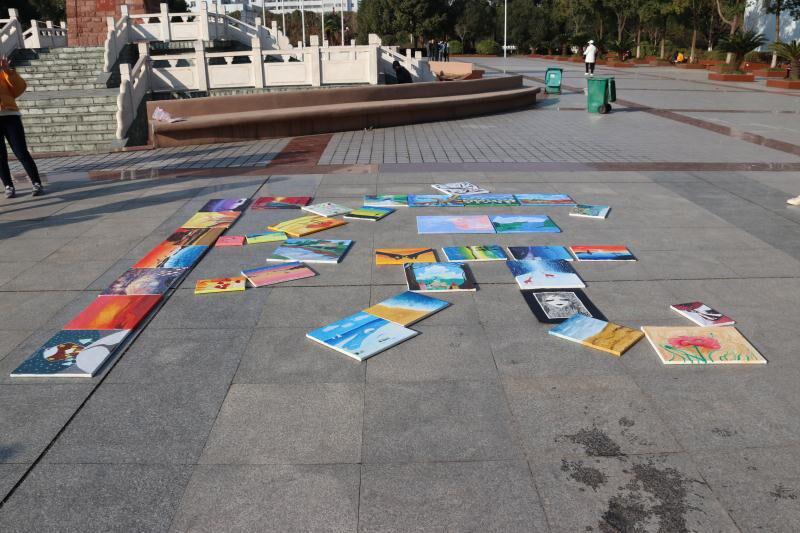 1月11日,教育学院2016级小学教育专业学生在国旗广场晒作品,创意十足的形式吸引了不少学生驻足欣赏,成为了冬日里一道靓丽的风景线。