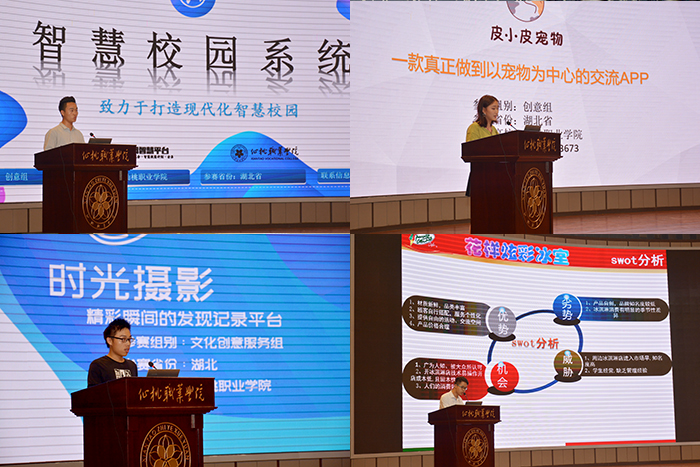 决赛现场,13个项目的负责人先后登场,从产品或服务介绍、市场分析及定位、商业运营模式、营销策划等方面对项目进行现场演示。经过激烈角逐,评委对“智慧校园系统”“皮小皮宠物”“时光摄影”“花样炫彩冰室”等10个项目给予肯定,并就进一步完善项目提出了意见和建议。