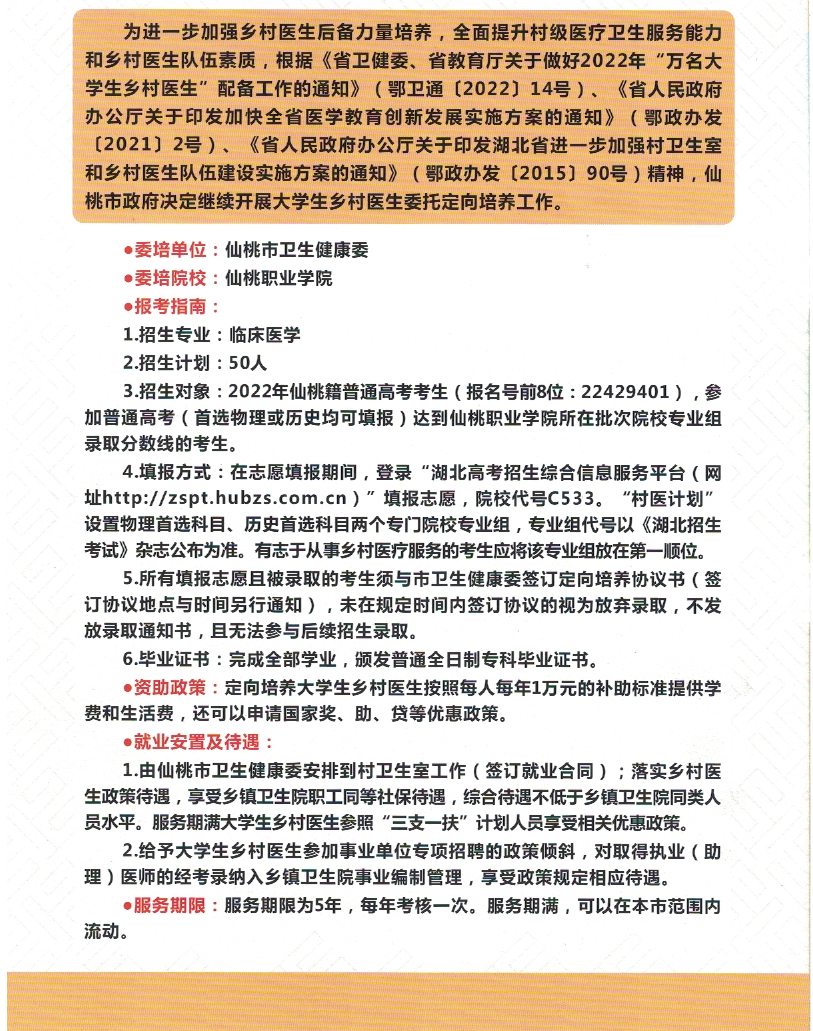 仙桃市大学生乡村医生委托定向培养