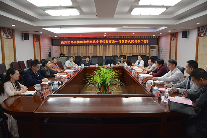 郭百高一行在三校主要领导的陪同下参观相关特色实训基地、实践教学场所,并就专业群建设、科研创新、内涵发展、依法治校、党建工作等方面进行了深入的探讨与交流。
